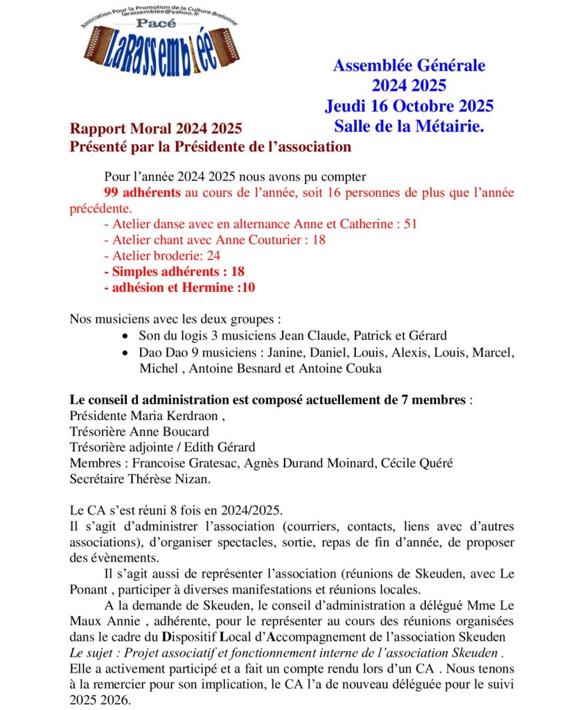 Assemblée Générale 2025 AG – 16 octobre 2025 Approuvé à l’unanimité …! Ci-dessous un diaporama automatique des rapports, bilan et perspectives présentés aux participants lors de l’AG 2025 :