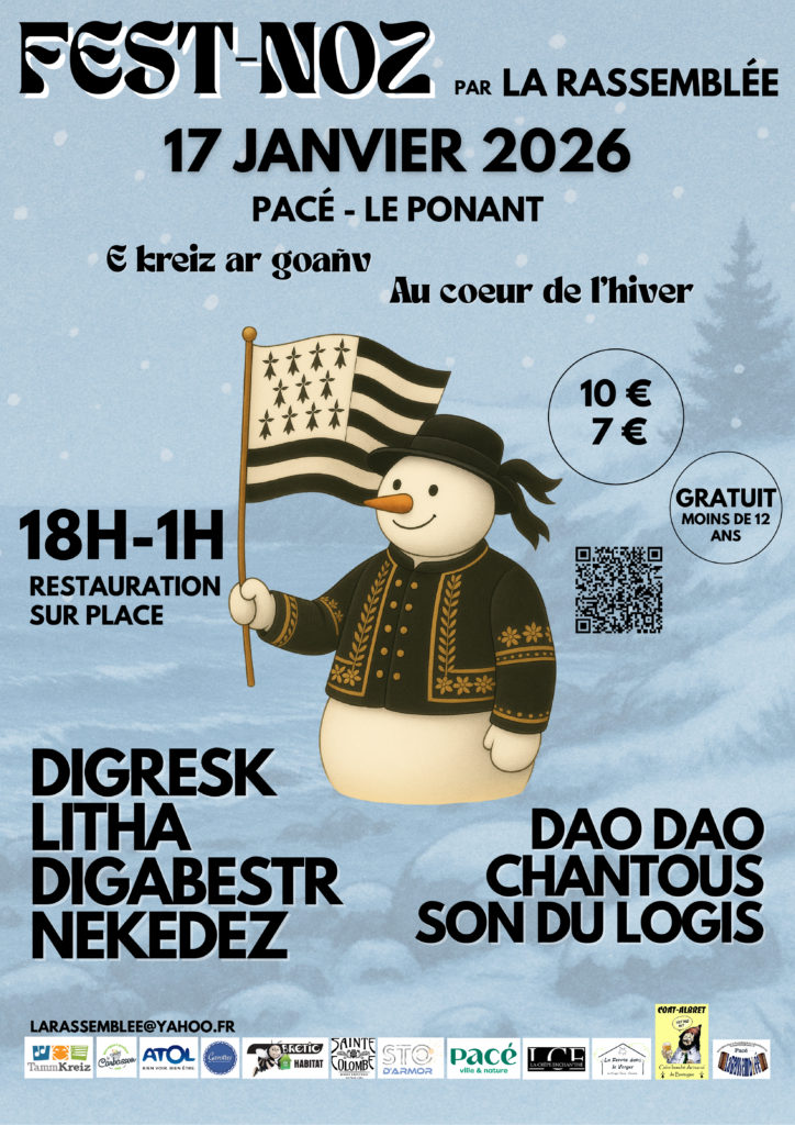 Le 17 janvier 2026, venez danser et partager la convivialité de la Rassemblée sur les musiques de Digresk, Litha, Digabestr, Nekedez, Son du Logis, Dao Dao, et Chantous.