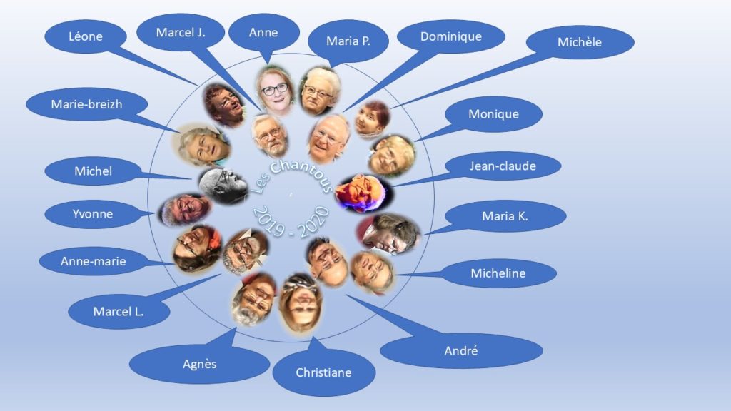 - Les activités de La Rassemblée ont été à l’arrêt durant 3 mois, à partir de mars 2020. Sauf pour les chantous qui ont maintenu leur réunion hebdomadaire, mais en virtuel pour chanter au téléphone. 18 titres en duo ont été enregistrés sur CD, dont deux d’entre eux chantés par Marie Breizh & Marcel Joly et par Maria Paty & Kerdraon …